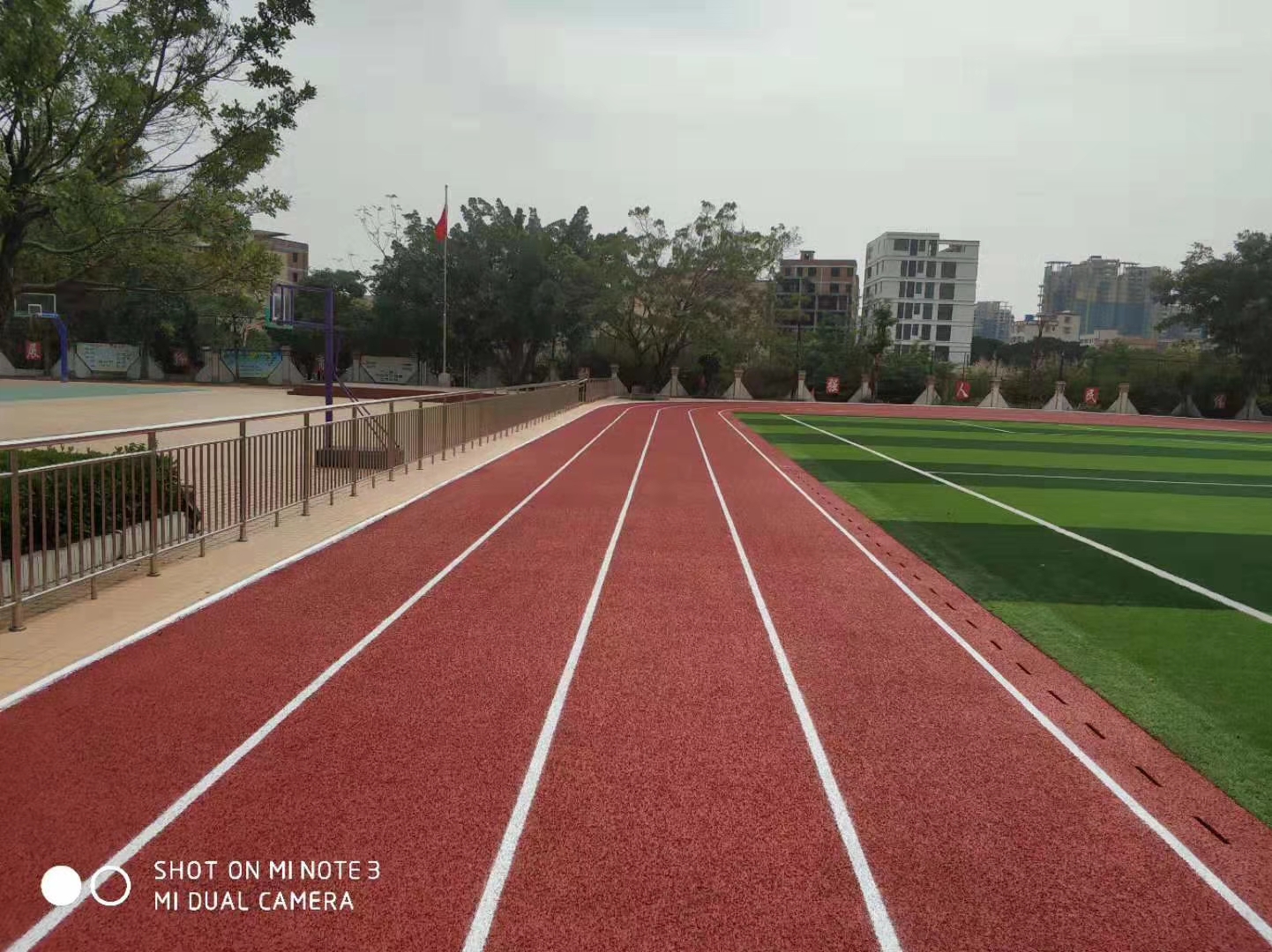 其次要對塑膠跑道資料的質量進行查驗。站在跑道上聞一聞氣味,是否是帶有刺激性的,用手摸一下跑道的觸感。當然最好的方法便是從工地上取到一塊資料,找第三方的查驗機構進行檢測。實在的講,一切的資料都會含有甲醛等物質,但只要不超越規范就不會對人體發生損害,因而為了人們的健康著想,有必要保證資料的有毒物質控制在國家規定的范圍內,如果資料檢測合格就闡明質量合格,如果不合格就需要找施工方進行交涉,嚴重者需要退貨處理。