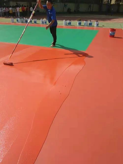 這種情況一般會發生在場地修補的時候,籃球場維修時,面漆會多次滾涂,每平方用量很容易就會達到0.5Kg,這不僅會造成材料的浪費,也會導致面漆的脫落。