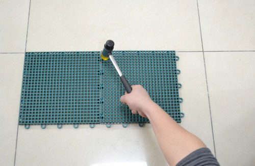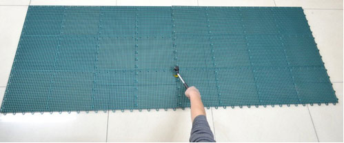 地面基礎(chǔ):在基礎(chǔ)堅(jiān)實(shí)、平整的基礎(chǔ)上均可。3米直尺范圍內(nèi)誤差不超過5毫米。懸浮式拼裝地板安裝前先將地面清掃干凈;安裝時(shí)請(qǐng)按場(chǎng)地的長(zhǎng)寬用滑石粉彈好 線,以此定位地板的安裝位置,彈線完成后貼上美紋紙,然后用專用油漆進(jìn)行劃線;再依次把銷和孔對(duì)齊后用橡皮錘敲擊地板接縫便可安裝成功。