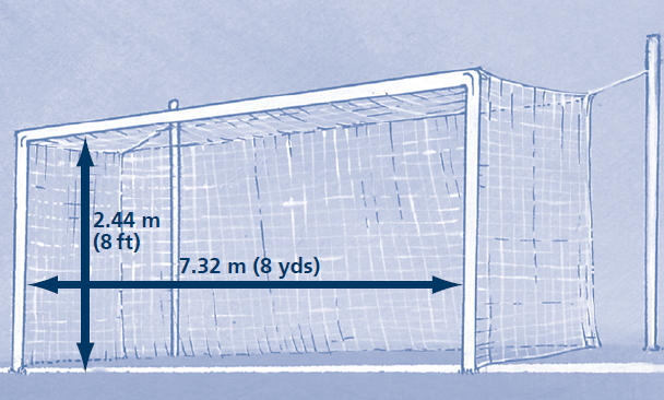 兩根柱子之間的距離是7.32米(8碼),從橫梁的下沿至地面的距離是2.44米(8英尺)。