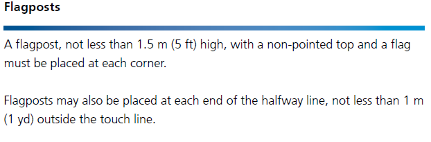 在中線的兩端、邊線以外不少于1米(1碼)處,也可以放置旗桿。