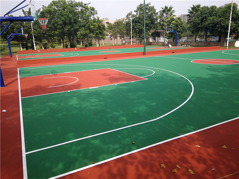 籃球場地有土質、水泥、瀝青和木質等。有條件的一般都用木質場地。土質、水泥和瀝青場地比較經濟,基層單位使用較多,但要注意地面平整,以防出現傷害事故,為防止運動員遭受意外損傷,面層多采用有彈性的硅PU面層或丙烯酸面層(聚氨酯由于在太陽照射下會散發一股很重橡膠味,且施工中容易出現起泡的現象,漸漸不再使用)。